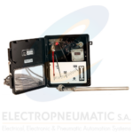 The NSTM 732 is a temperature indicating controller that measures temperature via a remote probe and compares it to a predefined setpoint. Based on this comparison, it controls a process either through a pneumatic signal or by activating a switch.