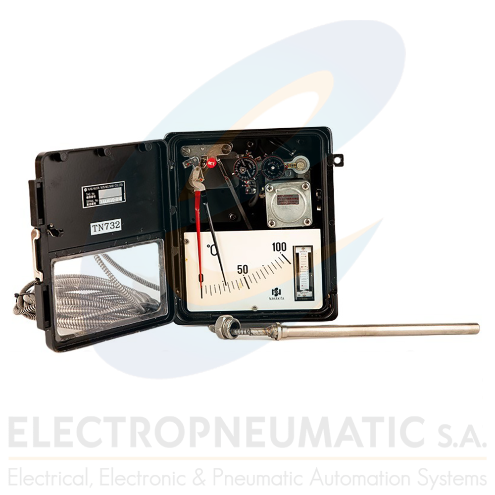 The temperature indicating controller model NSTM 732 by Nakahita Seisakusho Co., Ltd. is a reliable mechanical/pneumatic control device designed for accurate temperature monitoring and regulation in industrial systems. It belongs to the category of traditional controllers that operate without complex electronics, making it ideal for robust and fail-safe applications.